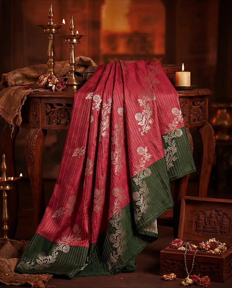 Adharsh Silks, a proud unit of Sri Mahalakshmi Silks, carries forward generations of weaving excellence from the heart of Sirumugai. Rooted in tradition and guided by craftsmanship, we bring you sarees that reflect the artistry of skilled weavers who have perfected their craft over decades.