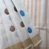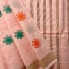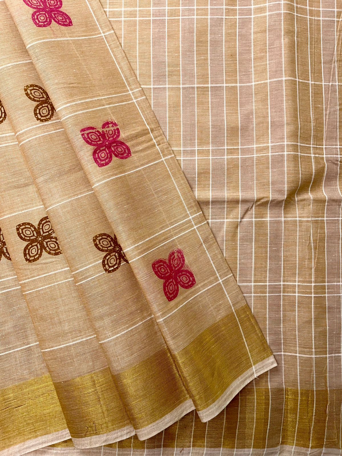 • Pallu: Beige/Cream (#E8D4B8) with white checks and golden yellow accent stripes