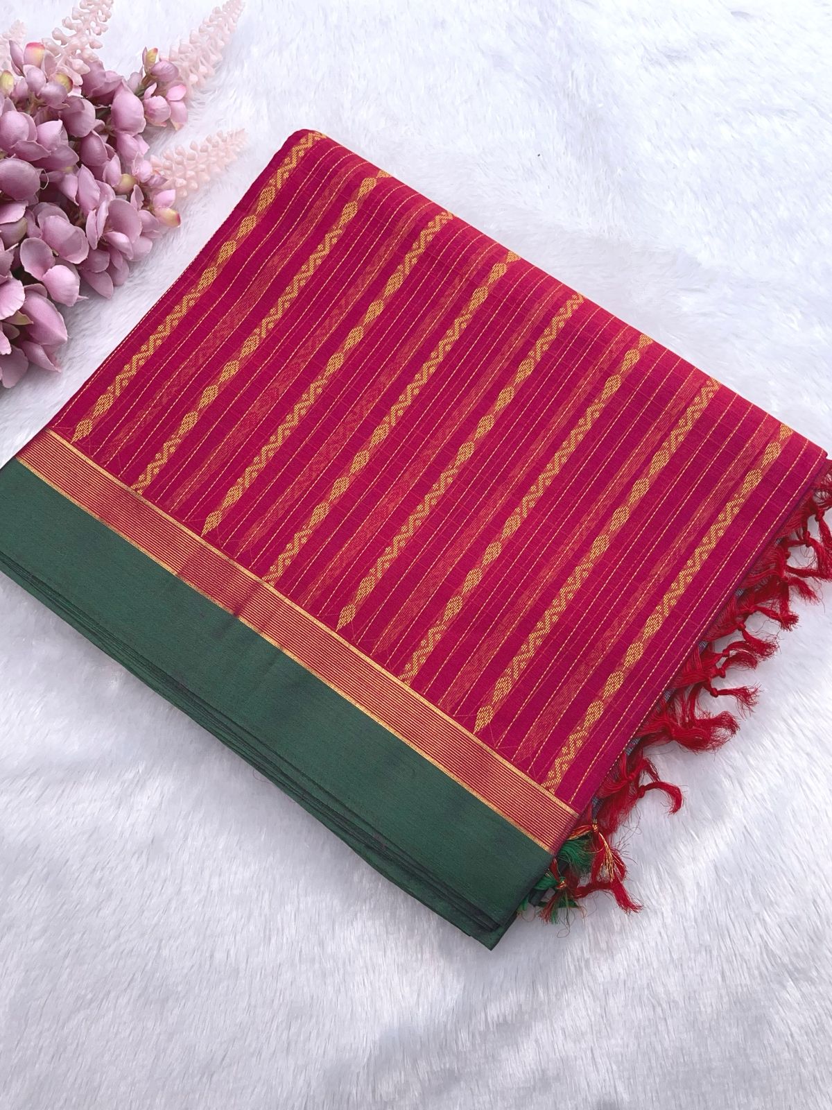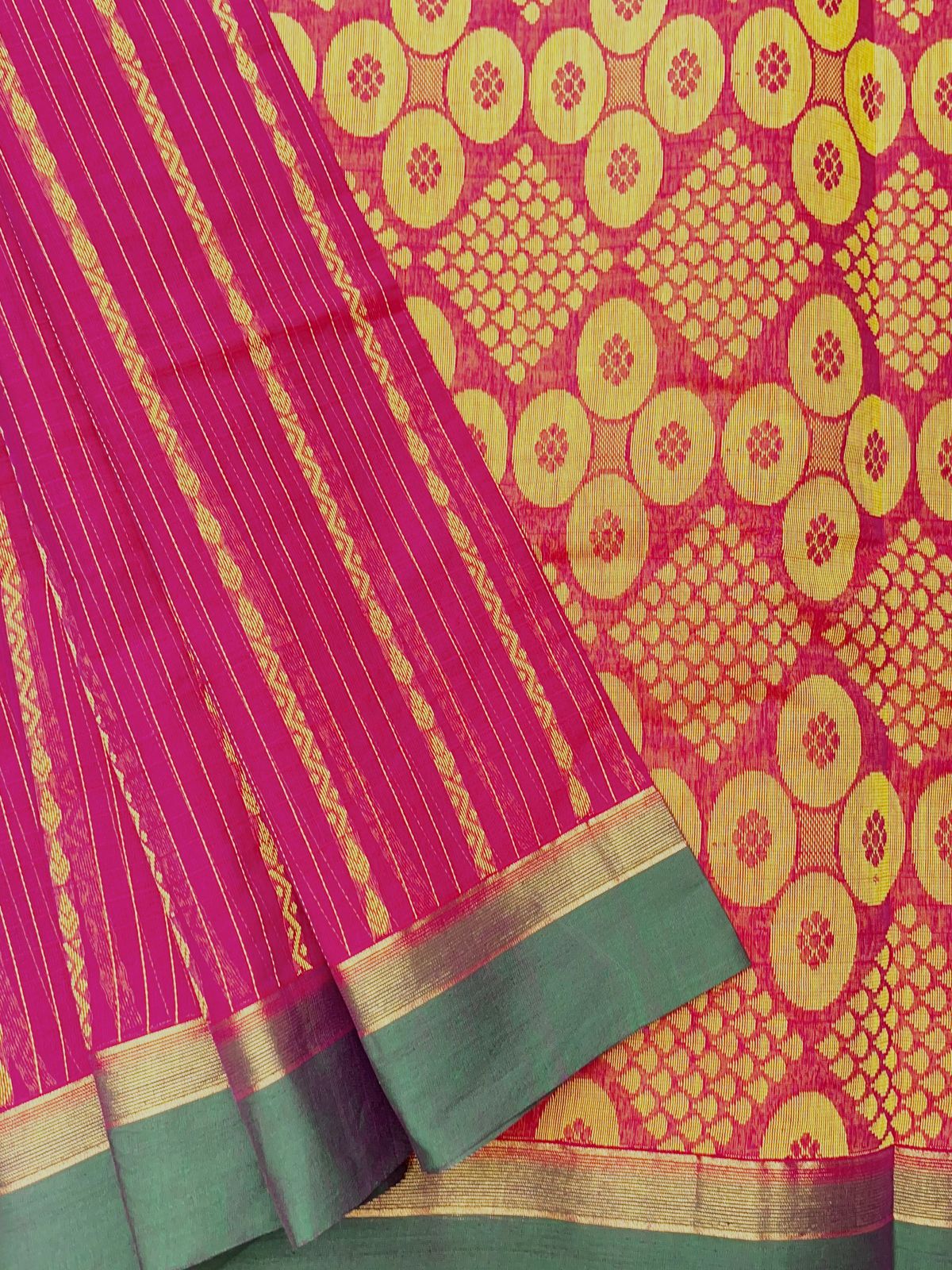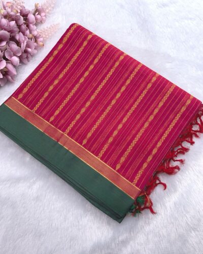 Be the first to review “Pure Cotton Vaira Oosi Pattern Saree | Rani Pink | Golden Yellow”