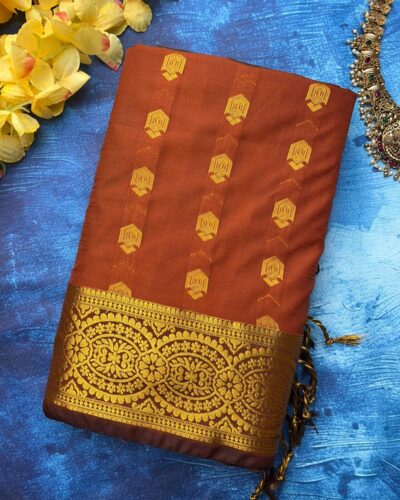 Be the first to review “Vintage Kanchi Soft Silk | Bright Orange | Golden Yellow”