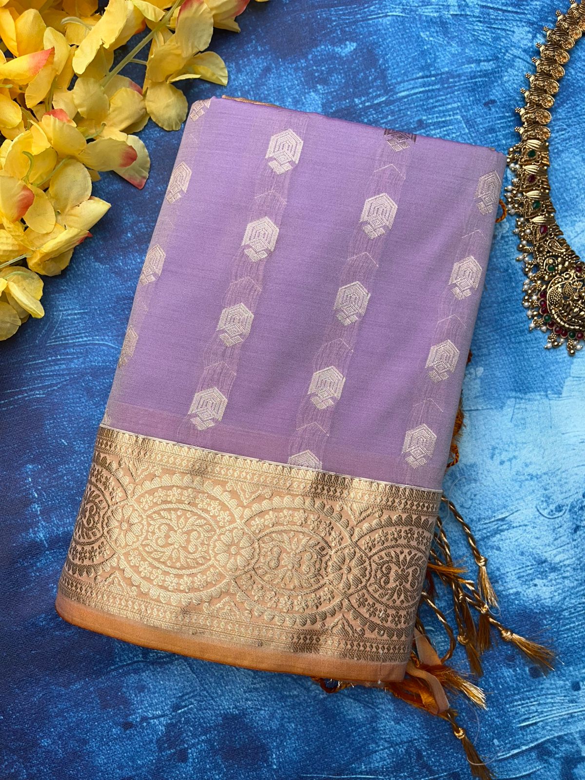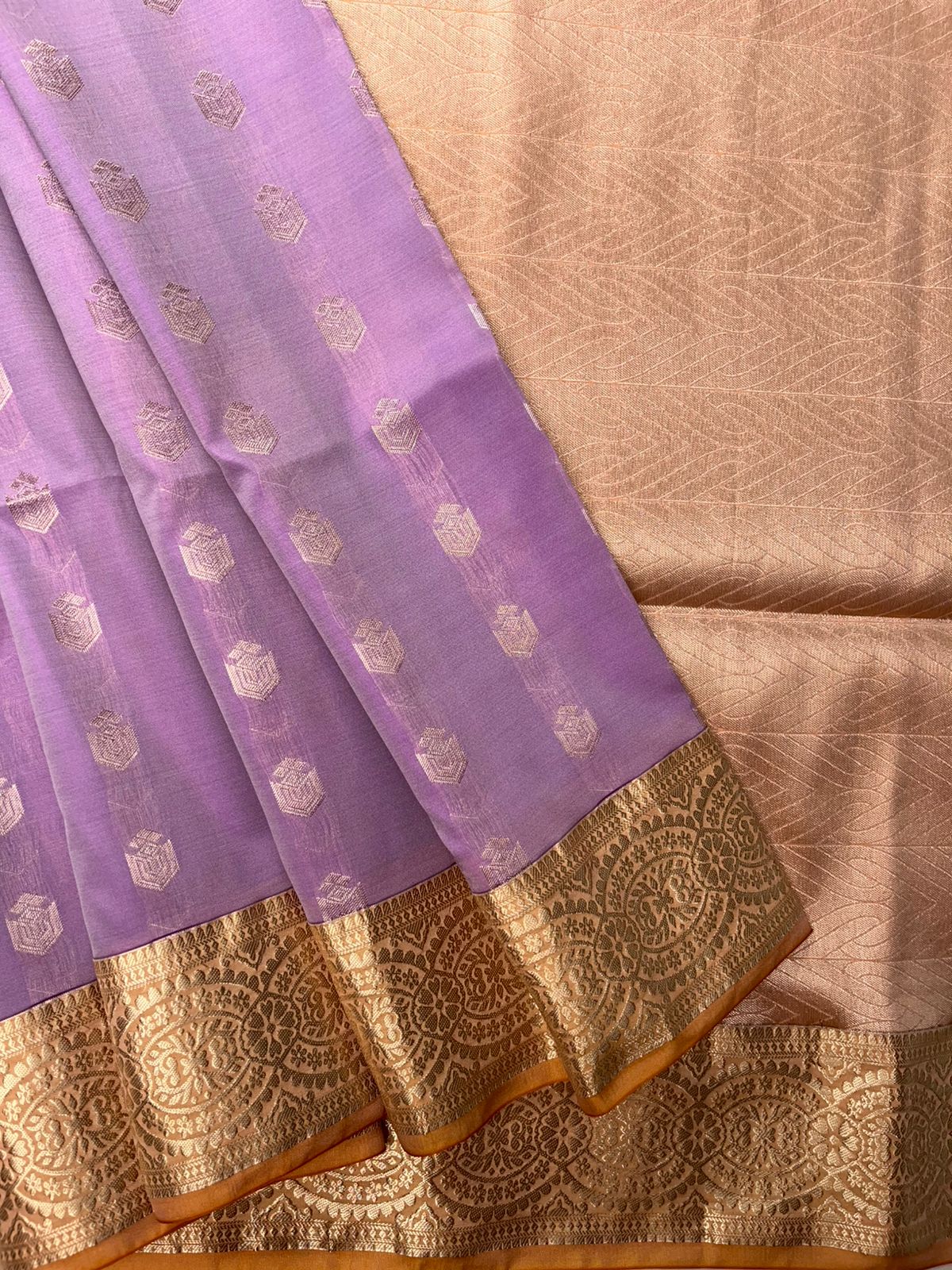 Be the first to review “Vintage Kanchi Soft Silk | Light Purple | Gold Cream”